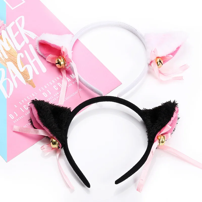 Cat Ears Cartoon Plush Headwear Girl Cosplay Masquerade Headband for Women Party Anime Decor Costume Headwear Bow Tie Bell